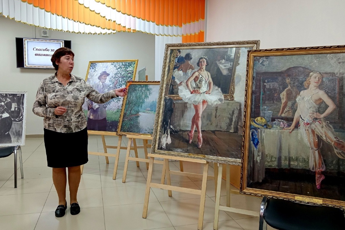 С частью картин зрители познакомились воочию, с другими — с помощью презентации, которую представила сотрудник музея-усадьбы А.М. Герасимова в Мичуринске.