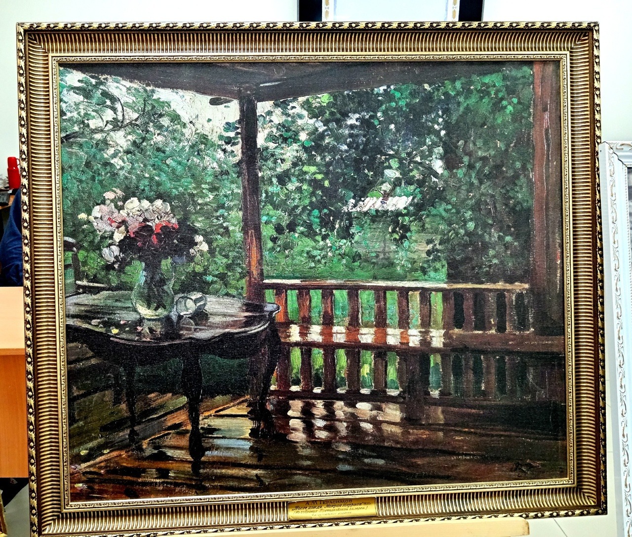 Цветы, растения и мокрая терраса,