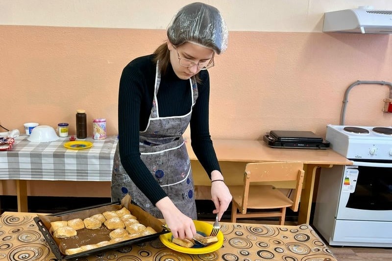 Школьники учатся готовить выпечку — плюшки, печенья, синнабоны, а также салаты, горячие бутерброды, каши и гарниры. С основами приготовления учащихся знакомит учитель труда Наталья Казакова.