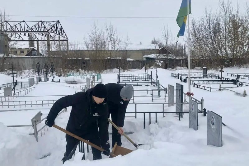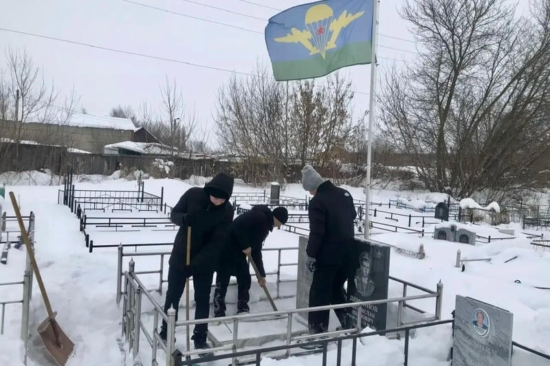 Братское захоронение у памятника Неизвестному солдату и могилы военнослужащих на кладбище в Первомайском — подшефные объекты первомайских школьников. После снегопада активисты «Движения Первых» первого корпуса школы, вооружившись лопатами, очистили территории захоронений от снега.