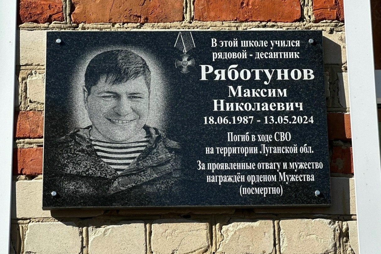 В честь Максима Ряботунова мемориальную доску установили на фасаде здания Хоботовского филиала Первомайской школы. Отдать дань памяти и уважения подвигу участника специальной военной операции пришли его родные, педагоги, школьники, жители.