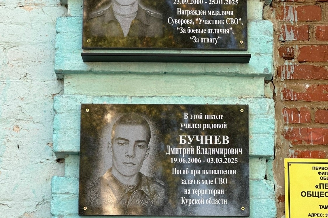 Мемориальные доски в селе Никольское открыли молодым парням, которые пали смертью храбрых на поле боя — Ивану Ерину и Дмитрию Бучневу. Доски установили на фасаде здания школы.