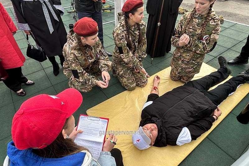 Воспитанники юнармейского отряда «Юный десантник» продемонстрировали показательные выступления. После жеребьёвки команды отправились по станциям согласно маршрутным листам. Юные патриоты демонстрируют свои умения и навыки на следующих этапах: «Огневой рубеж», «Преодоление естественных препятствий», «Строевая подготовка», «Радиационная, химическая и биологическая защита», «Тактическая медицина», «Герои малой родины».