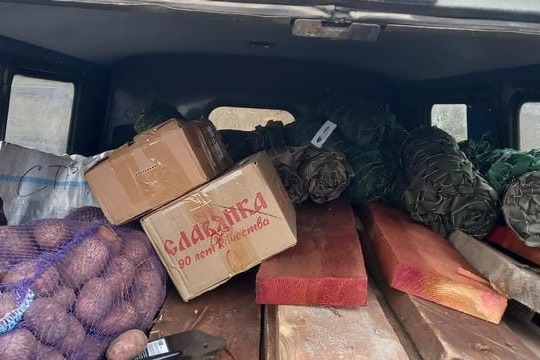 Участникам СВО с позывными «Шило», «Китай», «Шиш» волонтёры отвезли квадрокоптер «Мавик», маскировочные сети, сухие супы, варенье от участников группы «Домашние обеды для Победы», продукты от группы «Милосердие», окопные свечи от Натальи Безделиной из Мичуринска. Также бойцам передали консервацию, инструменты, антидроновые одеяла, одежду, посылки от родных.