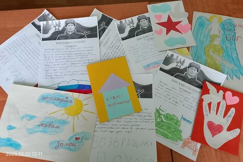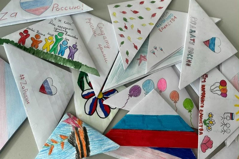 В своих письмах школьники выразили поддержку и благодарность участникам СВО за мирное небо, поздравили с предстоящим праздником — Днём народного единства.