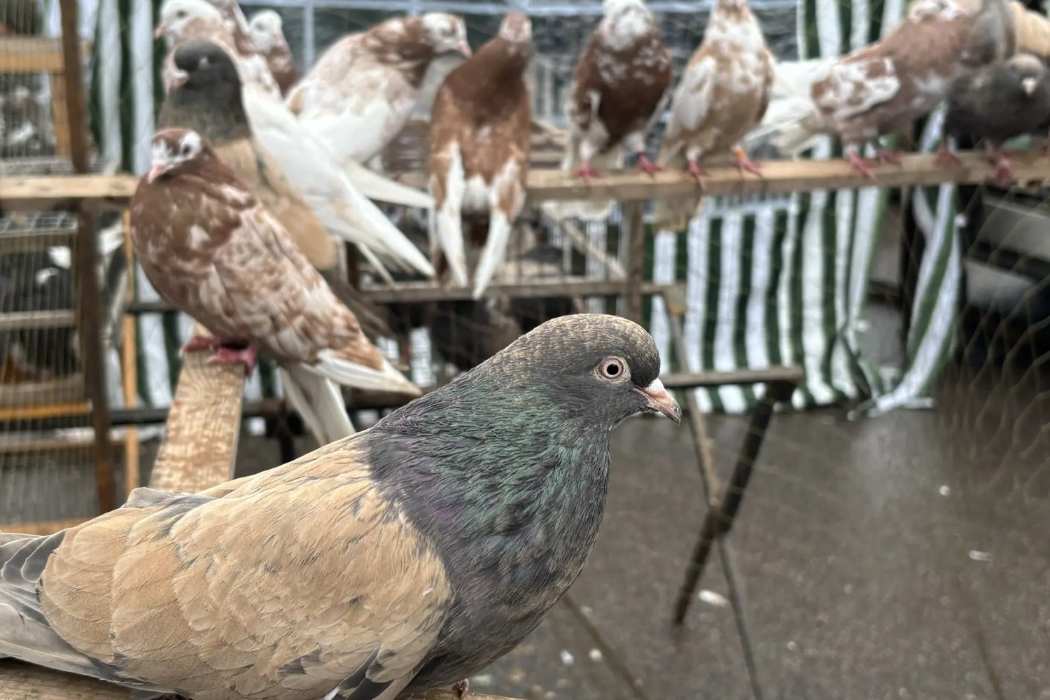 Выставка голубей проходит рядом с Центральным домом культуры. Она открылась ещё в 5:00, а уже в 7:00 от посетителей не было отбоя.