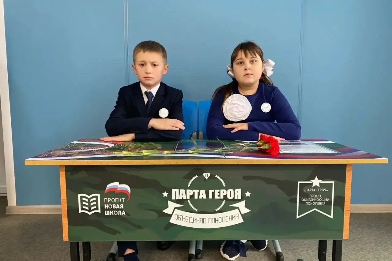 К мемориальным доскам возложили цветы и почтили память погибших минутой молчания. В филиалах школы открыли парты героев.