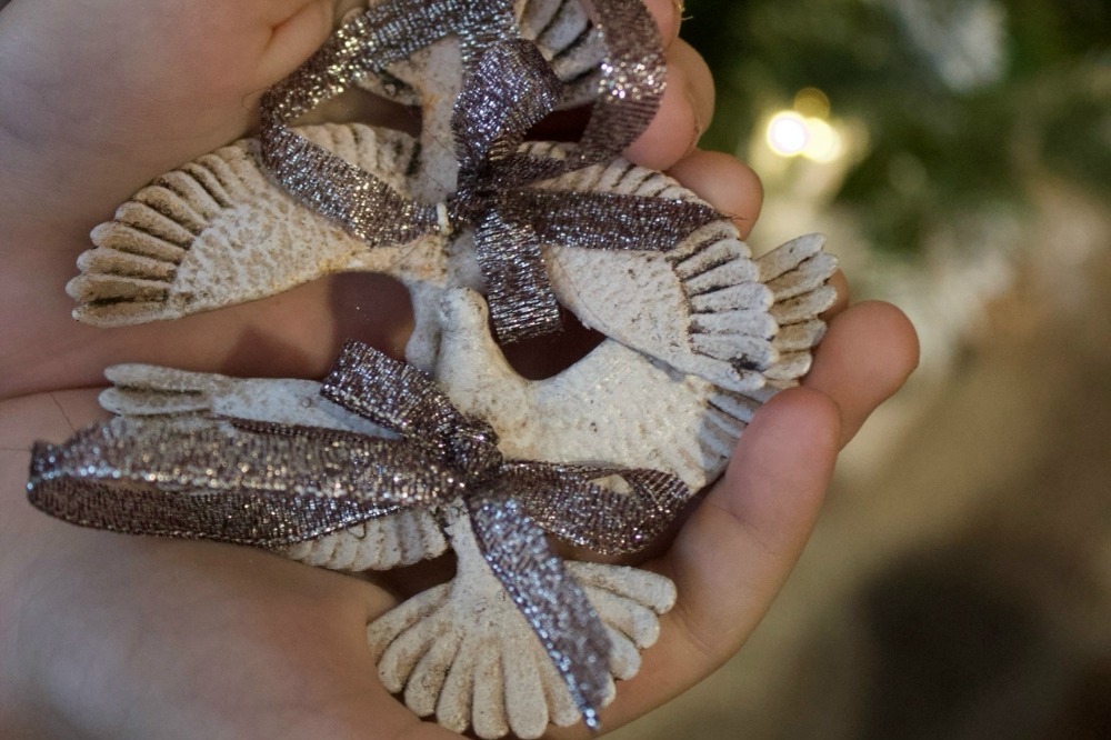 На игрушку Наталья наносит несколько слоёв краски, каждый из которых должен хорошо просохнуть. Далее покрывает патиной, декоративной краской-воском, декорирует. Завершающая стадия — финишная обработка воском. Как пояснила мастерица, именно благодаря воску игрушки приобретают винтажный стиль.