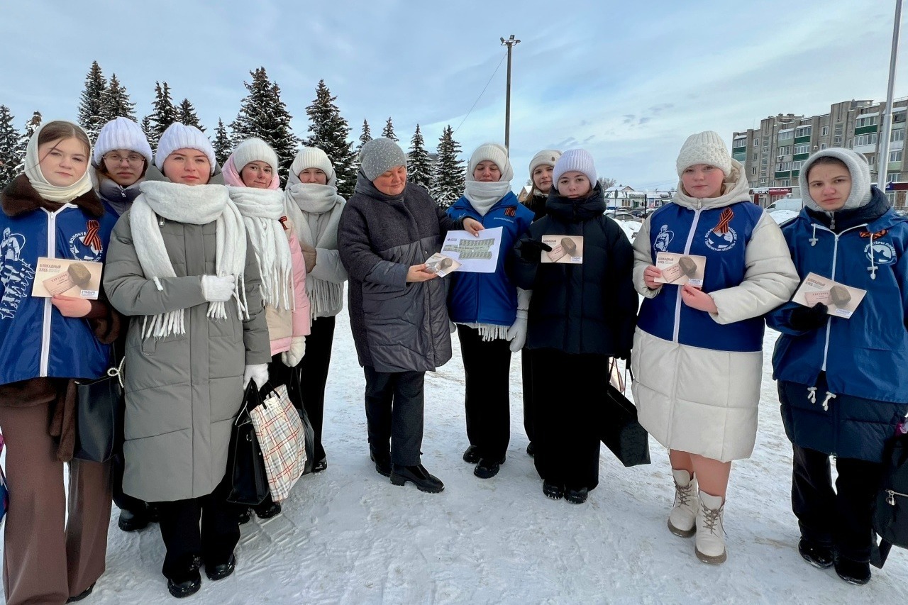 К Всероссийской акции «Блокадный хлеб» присоединились волонтёры Победы, юнармейцы, активисты «Движения Первых», учащиеся первого корпуса Первомайской школы имени Героя России А.В. Кондрашкина.