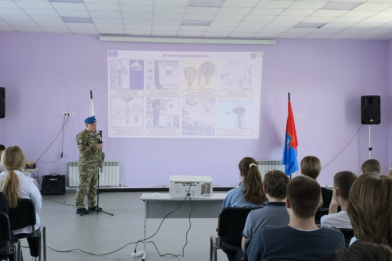 Офицер рассказал школьникам о своей службе в ВДВ, об участии в контртеррористических операциях в Сирии и Казахстане, в СВО, о командировке на Северный полюс.