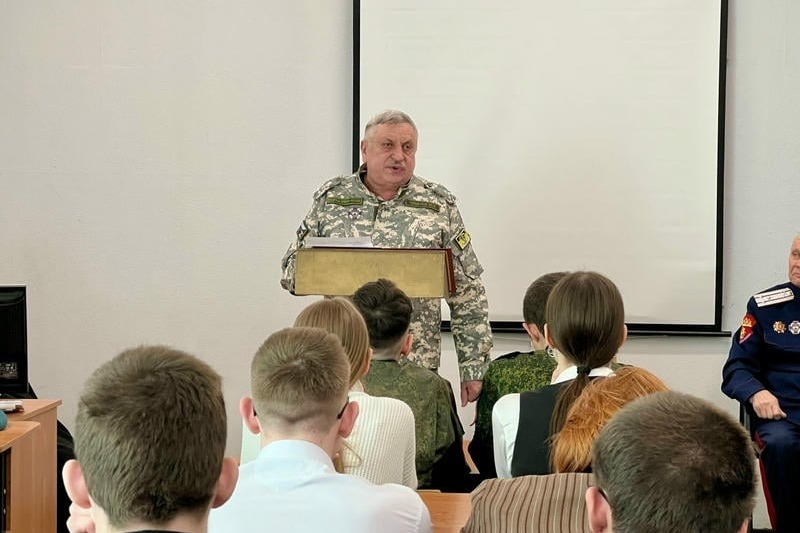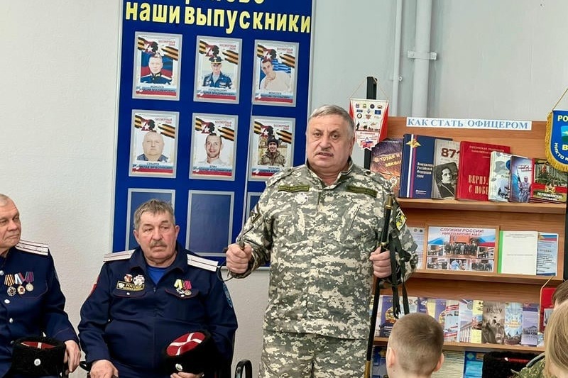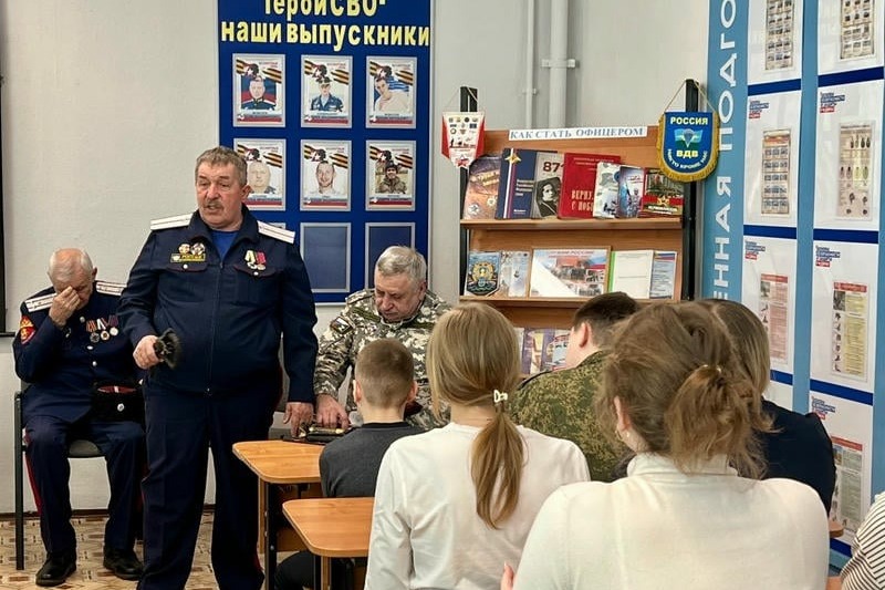 Встреча с казаками хуторского казачьего общества «Богоявленское» состоялась в первом корпусе Первомайской школы. С учащимися встретились атаман хуторского казачьего общества Юрий Чивилёв, есаул Валерий Стуканов и войсковой старшина Владимир Милованов.