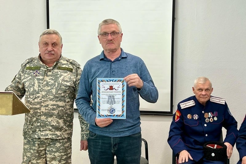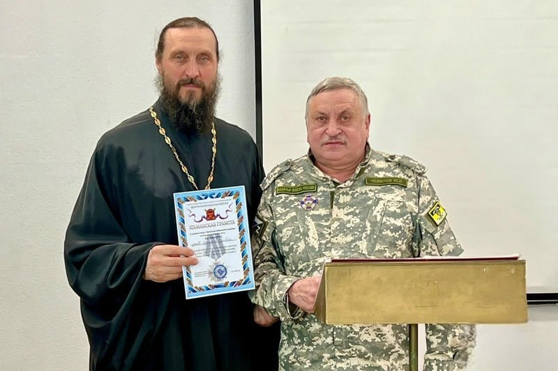 За плодотворное сотрудничество и вклад в развитие казачества на территории округа Юрий Чивилёв вручил атаманские грамоты иерею Ярославу Гривасу и педагогу первого корпуса Первомайской школы Олегу Морковину.