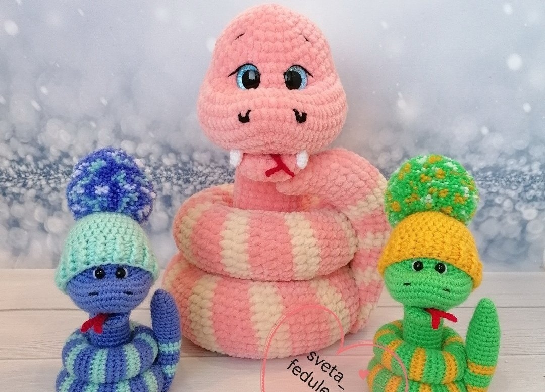 Амигуруми Светлана вяжет крючком. Гипоаллергенную пряжу покупает на маркетплейсах. Схемы для будущих изделий придумывает сама. Вяжет рукодельница в свободное от работы и домашних дел время.