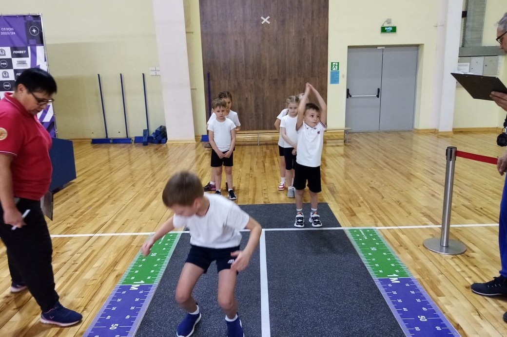 Представители первой ступени комплекса ГТО прошли несколько испытаний – прыжки в длину с места, наклоны вперёд из положения стоя на гимнастической скамье, подъём туловища из положения лёжа, бег на дистанции 10 метров.